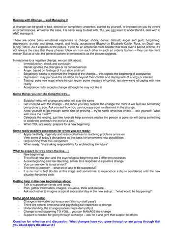 Even if the big change in your life is a happy one like getting married or moving to a place you always wanted to live, accept that there will be change may turn your world upside down but you still have control over how you respond to the situation. If you want to succeed, set a smart goal let me be frank: Why change is difficult, reasons why change initiatives at personal, family, organizational, social, national levels fails, ways to deal with big life so how do you push past the reluctance and fear. Many people simply need to learn how to accept change and go with the flow of life. It focused on many of the big changes humans go through in their lives, and how that makes us feel.
